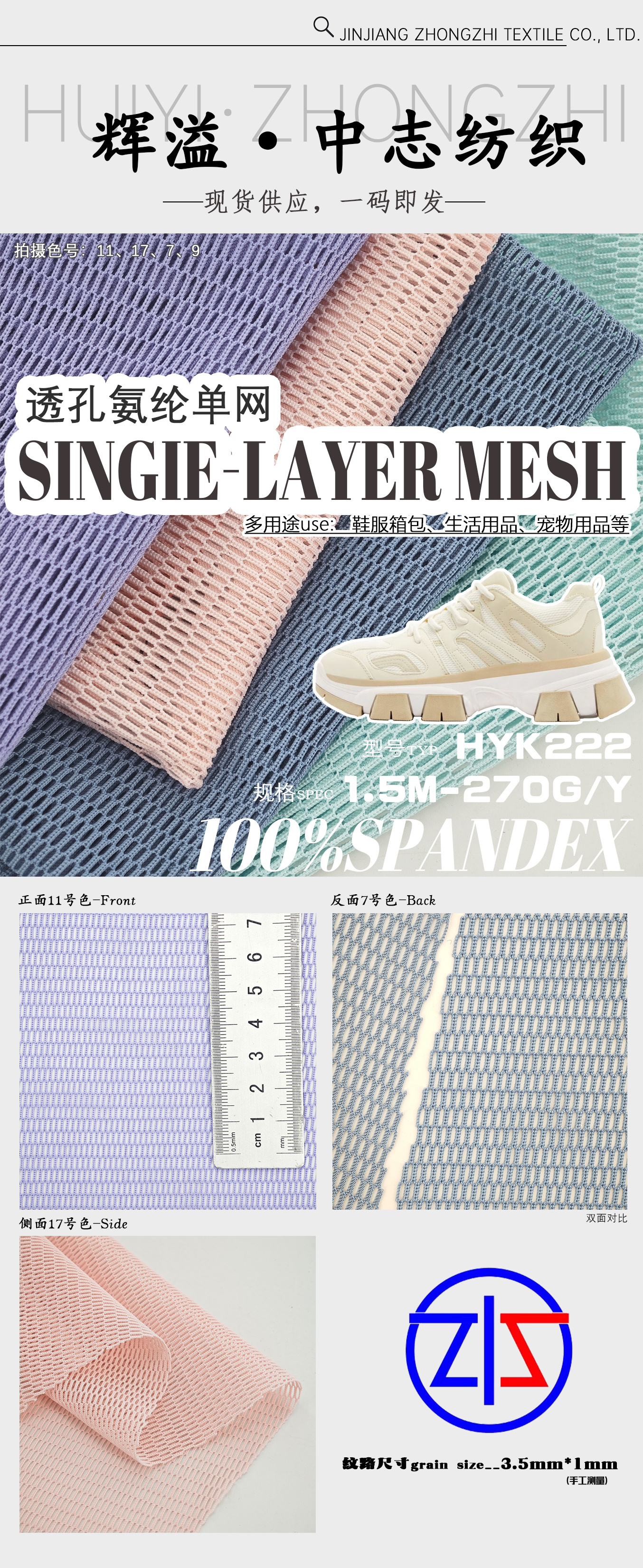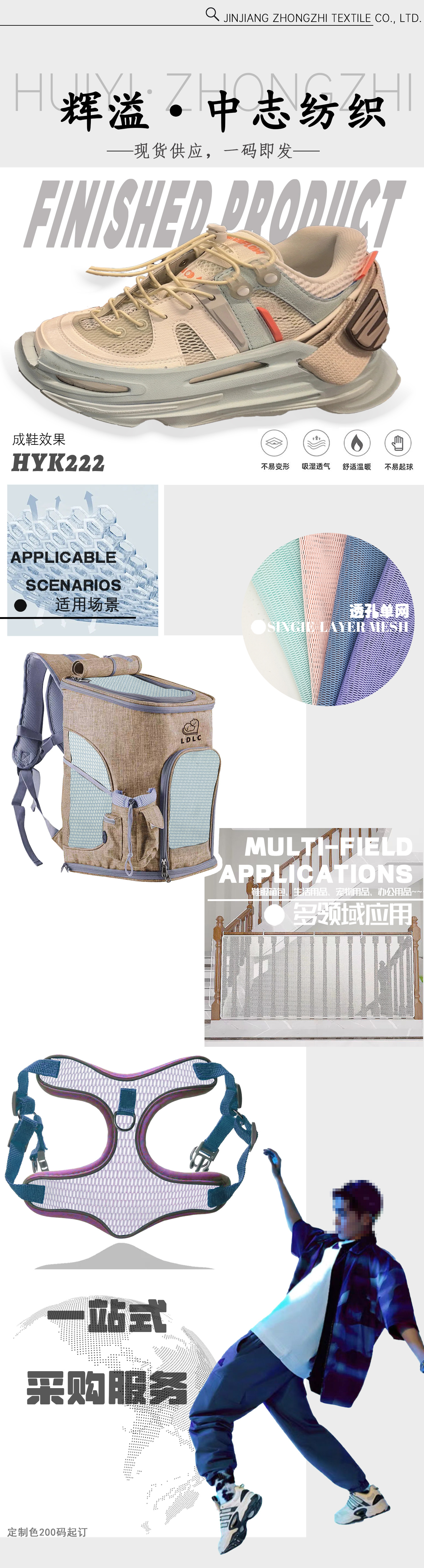 HYK222 Malla de una sola capa, alta calidad y transpirable, ligera para zapatillas