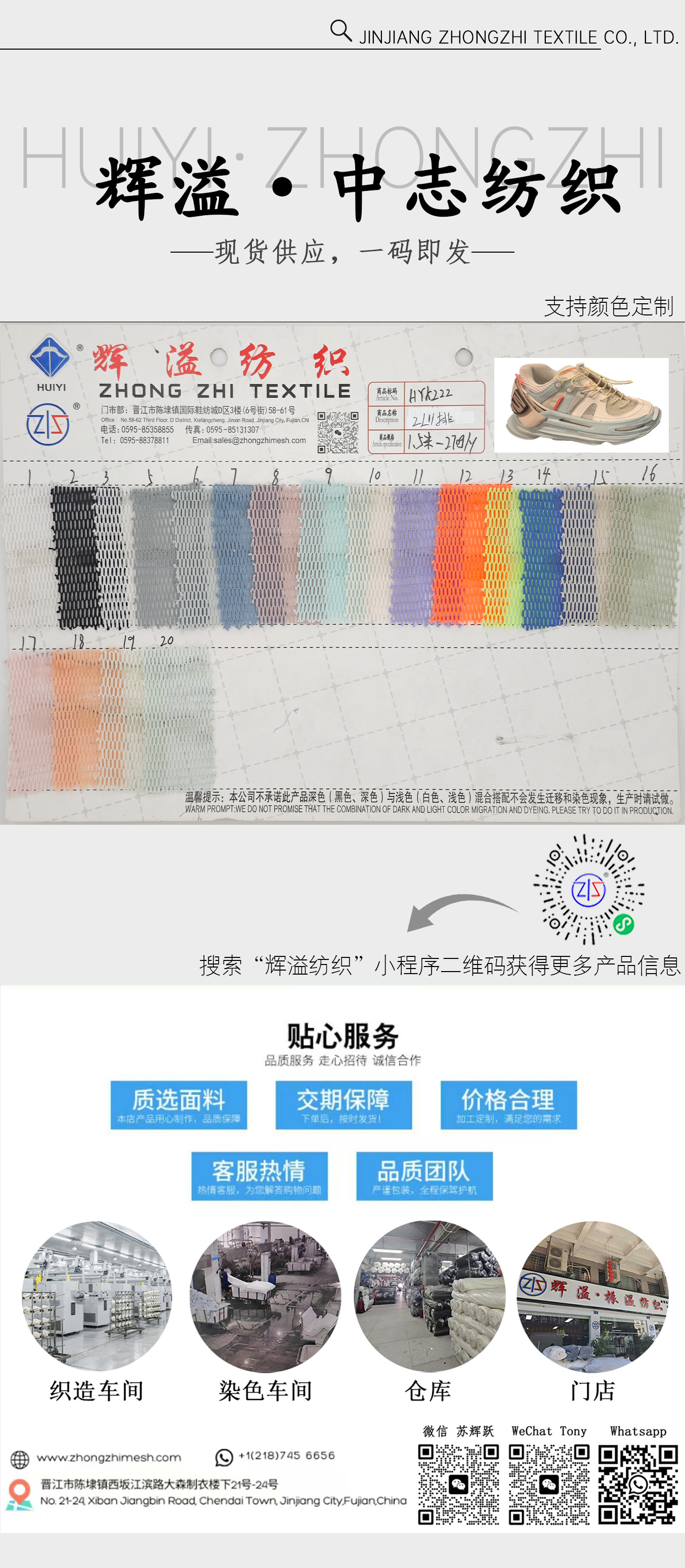 Fundada en 2008, Jinjiang Zhongzhi Textile Co., Ltd. es un fabricante líder de alto rendimiento Telas de malla para calzado deportivo , incluyendo Malla Sandwich, Malla de Capa Única, Malla Jacquard, Tela de Malla 3D y así sucesivamente . A través de la inversión continua en tecnología avanzada y un enfoque en Innovación , la compañía ha crecido desde un proveedor local hasta convertirse en un socio de confianza para Marcas globales .