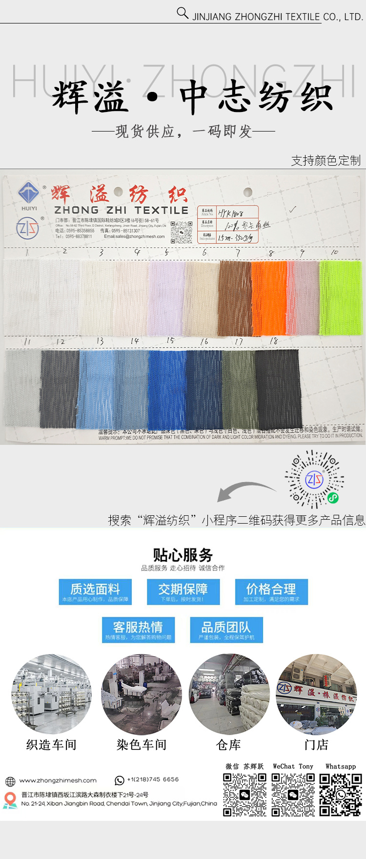 Con Más de 15 años de experiencia , Jinjiang Zhongzhi Textile combina materiales de calidad, producción de vanguardia y adaptabilidad al mercado para satisfacer las demandas de la industria. Su fuerte Asociaciones internacionales y el equipo profesional refuerza su reputación como un Proveedor confiable de alta calidad en la industria textil.