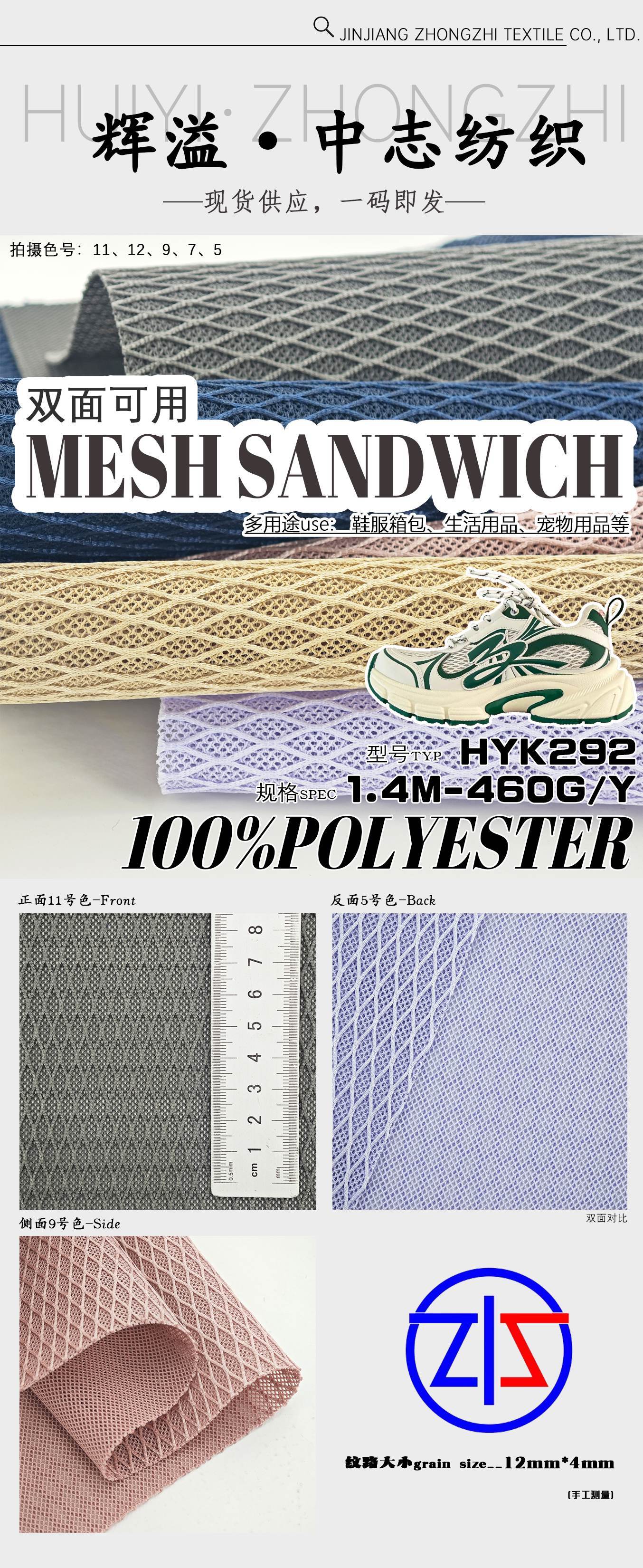 - Nombre del producto: HY292 Malla sándwich 100% poliéster clásica para zapatillas deportivas - Duradera, transpirable, ligera
