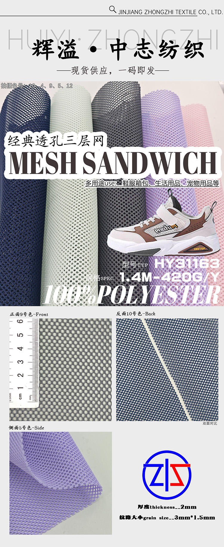 HY31163 Tela de malla sándwich 100% poliéster clásica para zapatillas deportivas - Duradera, transpirable, ligera