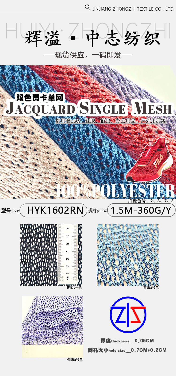 Fundada en 2008, Jinjiang Zhongzhi Textile Co., Ltd. es un fabricante líder de productos de alto rendimiento Telas de malla para calzado deportivo , incluyendo Malla Sandwich, Malla de una sola capa, Malla Jacquard, Tela de malla 3D y así sucesivamente . A través de la inversión continua en tecnología avanzada y un enfoque en Innovación , la empresa ha crecido desde un proveedor local hasta convertirse en un socio de confianza para Marcas globales .