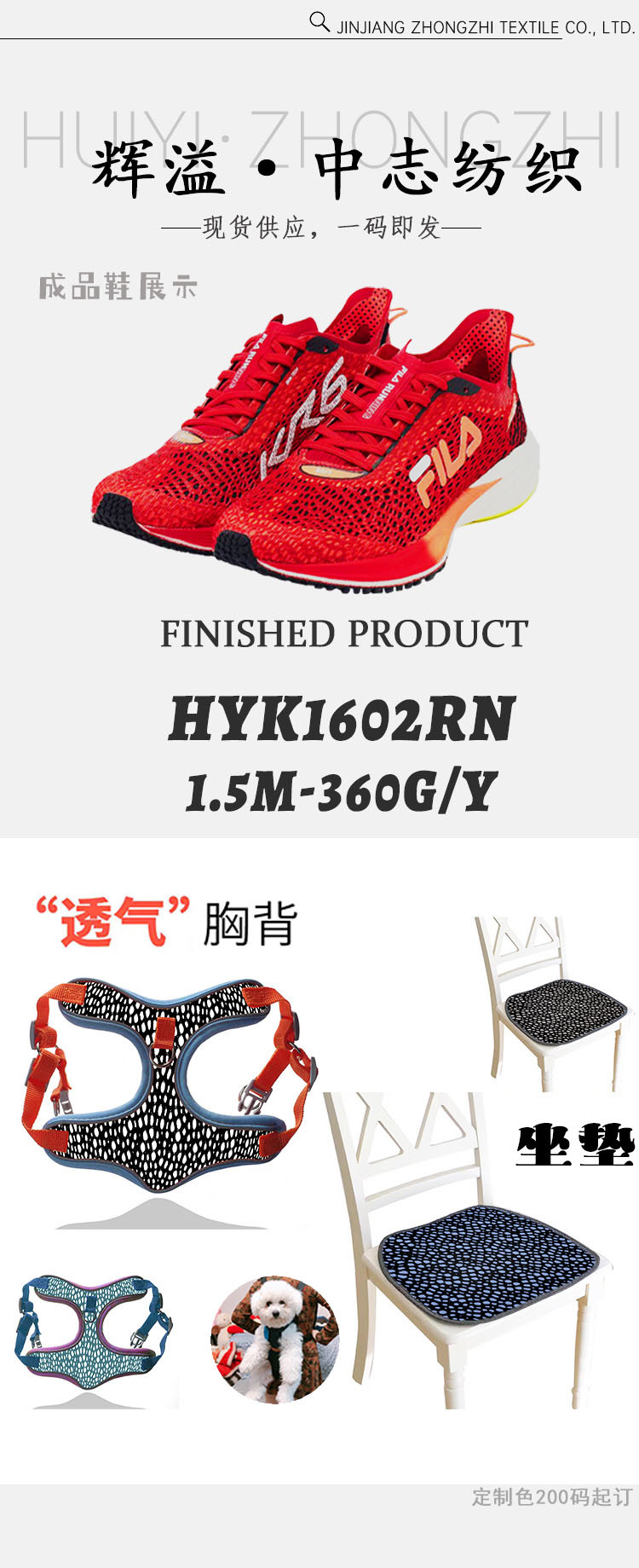 - Nombre del producto: HYK1602RN Tejido de malla de una sola capa elástico y absorbente