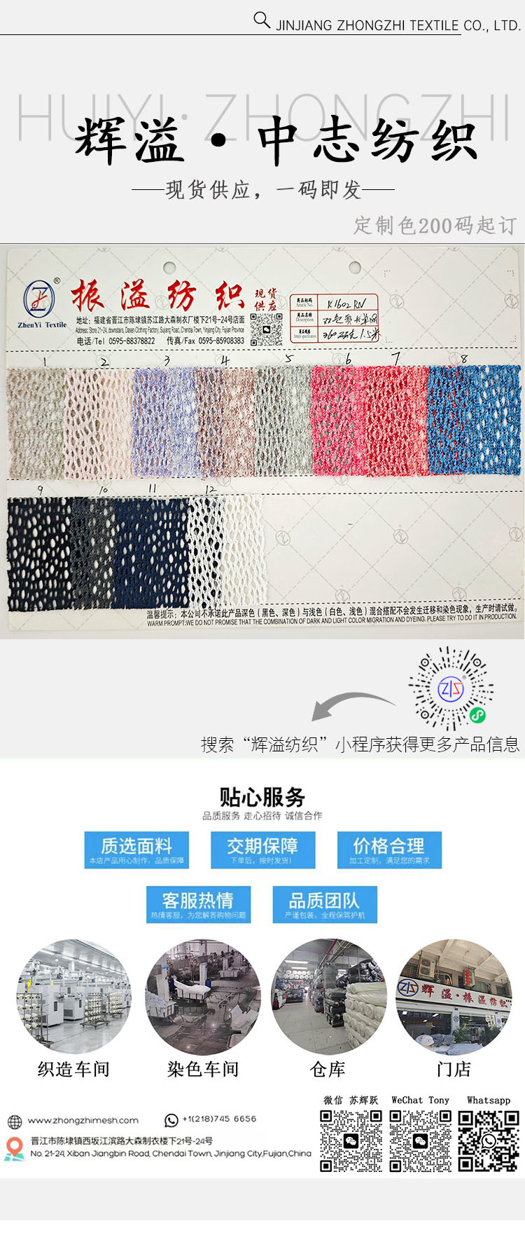 Con Más de 15 años de experiencia , Jinjiang Zhongzhi Textile combina materiales de calidad, producción de vanguardia y adaptabilidad al mercado para satisfacer las demandas de la industria. Su fuerte Asociaciones internacionales y el equipo profesional refuerza su reputación como un Proveedor confiable de alta calidad en la industria textil.