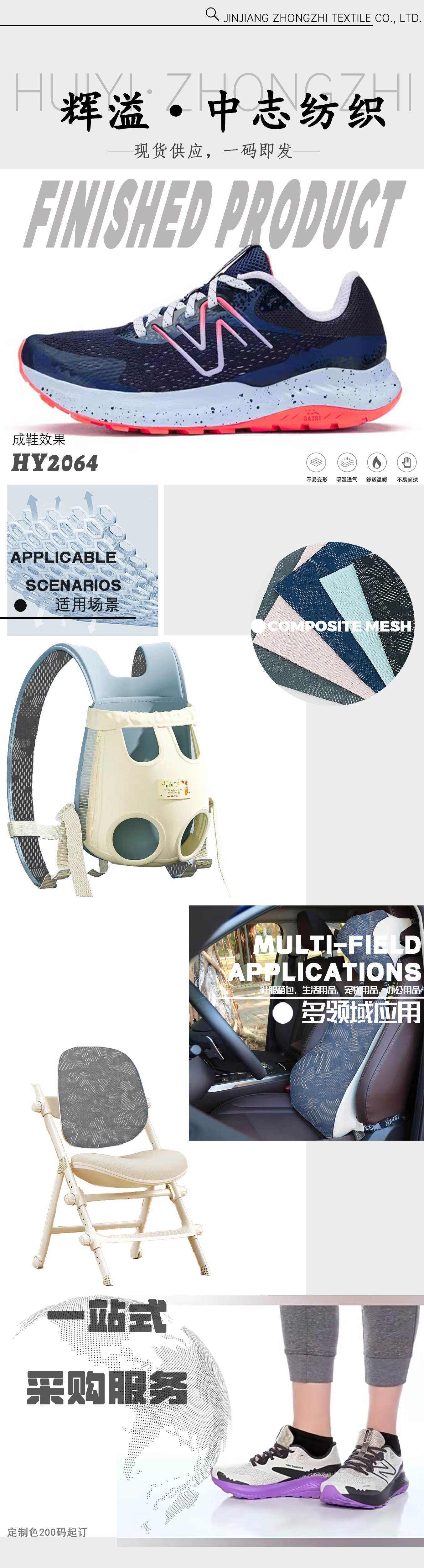 HY2064 Tela de malla sándwich laminada 100% poliéster para zapatillas deportivas - Duradera, transpirable, ligera