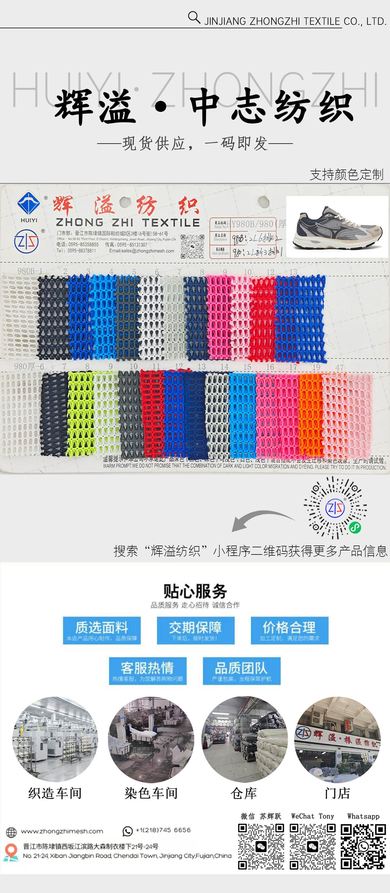 Como un fabricante profesional de telas de malla, Jinjiang Zhongzhi Calzado Material Trade Co., Ltd Proporciona: