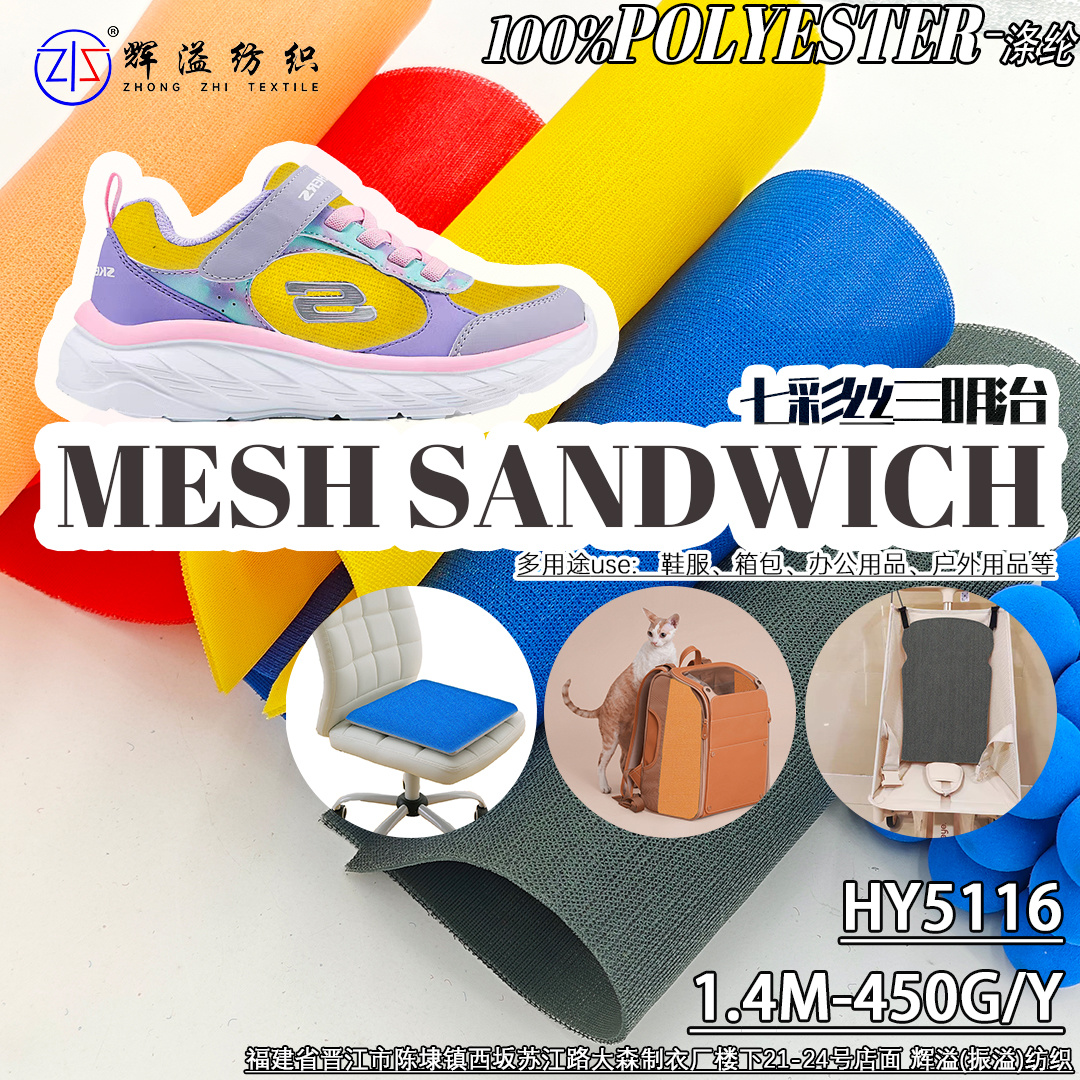 - Nombre del producto: Tela de malla sándwich 100% poliéster, tela de malla aire sándwich para zapatillas de correr (HY5116)
